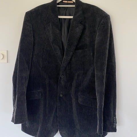 Selected blazer for herre i størrelse 52. Jakken er svart/mørkegrå og laget i bomull. Struktur og mykt stoff. Klassisk modell med slag, knappelukking foran og lommer. Fôret innside med flere innerlommer. Passer til både hverdagsbruk og mer formelle anledninger der en enkel, mørk blazer er ønsket.