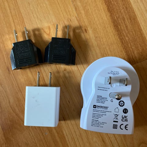Adapteren har universalt støpseloppsett med uttrekkbare plugger for bruk i flere ulike land. Den har vanlig stikkontakt på forsiden samt 2 USB-porter for lading av elektroniske enheter. På adapteren er det angitt maksbelastning 6,3 A / 1575 W ved 250 V AC.