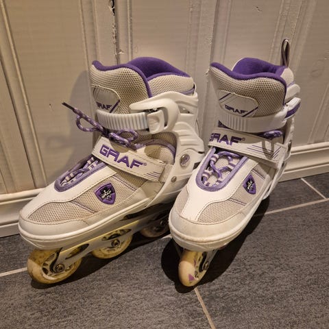 Rulleskøytene er godt brukte men det er fortsatt mye igjen.