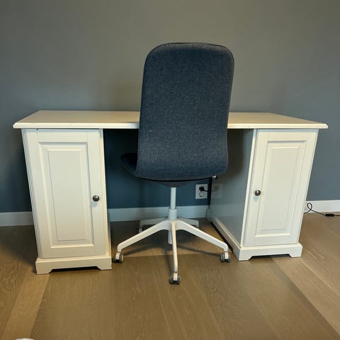 Hvit oppbevaringsbord/skrivebord med flere nivåer