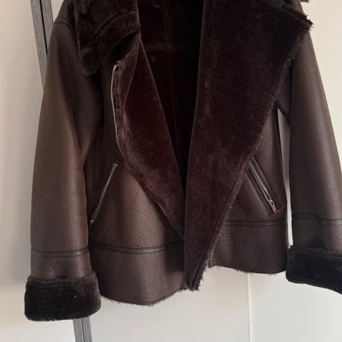 KappAhl jakke for dame i svart fuskeskinn i størrelse 36. Jakken har glidelåslukking foran, flere glidelåslommer og detaljer i metall. Passer som ytterjakke i overgangssesonger eller til hverdagsbruk når været tillater det. Fuskeskinnsmaterialet gir et skinnpreg uten å være ekte skinn.