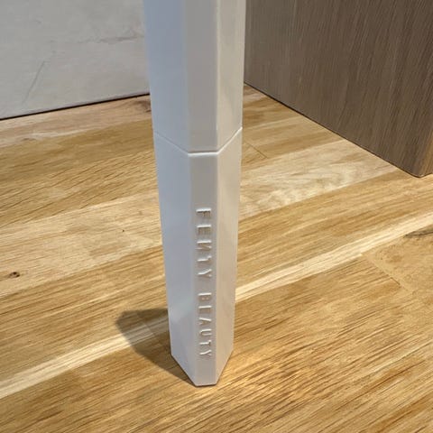 Produktet kommer i en gjennomsiktig firkantet beholder med sort kork. Dette er en matt, metallisk lip cream som påføres med applikator.