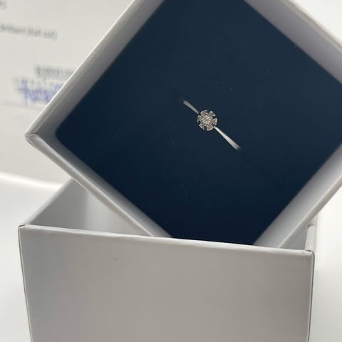 Pent brukt ring med sten, 0,25 carat. Hvitt gull 9kt. Fra Bjørklund.