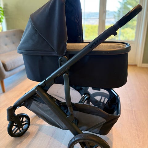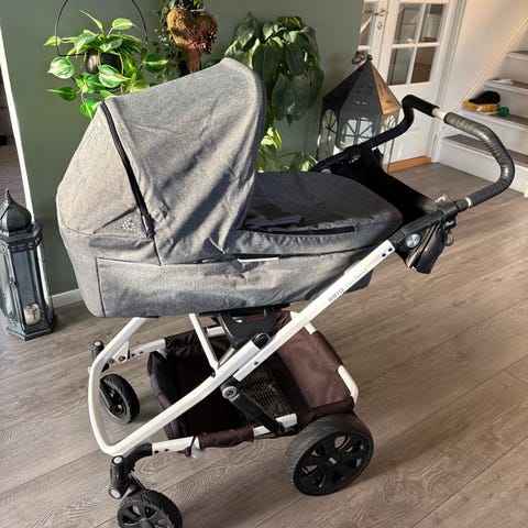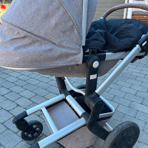 Bagdel kan brukes som reiseseng da den har lufting under og rundt. Madrassen kan ta av trekket og vaskes. Vognen har noe flekker.