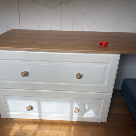 • montere medfølgende topplate og bruke den som en vanlig kommode. Da kan man eventuelt legge en standard 3-delt stellematte oppå.