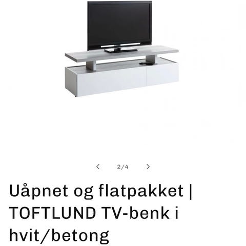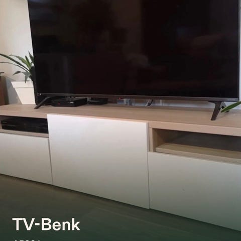 Tv-benk fra IKEA selges pga flytting. Topp plate(lengde) på 136cm. Midt åpningen er på 55cm. Den er helt fin, selges pga flytting☺️