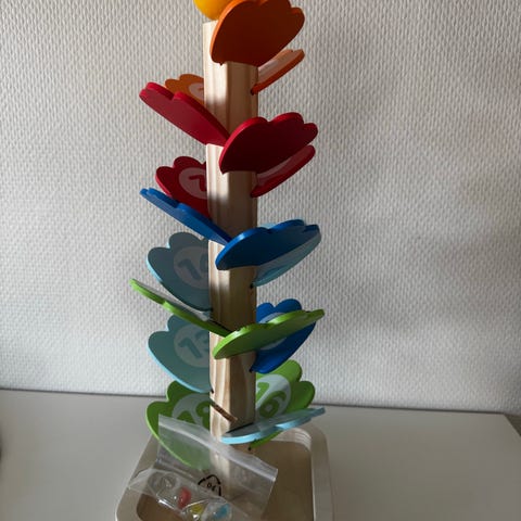 Vakker klangtrapp med klinkekuler som ruller ned banen og laker deilig klang. Ser fin ut i bokhyllen.