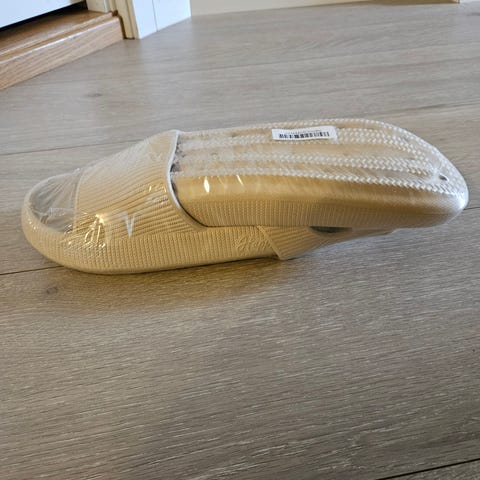 HappyFlops sandaler i størrelse 40. Sandalene er åpne foran og har perforert såle med dreneringshull. Fargen er beige. Egnet som lette hverdagssandaler eller til bruk i dusj, garderobe og lignende miljøer der det er praktisk med enkle og vaskbare sandaler.