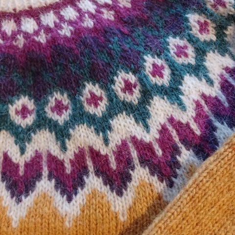 Strikkefasthet: 12-10 masker på pinne nr 6-8 = 10 cm
