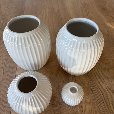 Kählervaser i lyseblå eller mint glasert keramikk. Den største og den lille, på bildet. Har ikke lysestake. Selges fortrinnsvis samles :)
