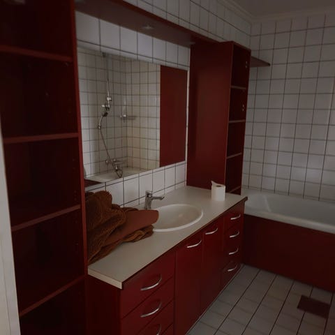- Skade 1: Noen synlige merker/hakk på utsiden av den ene langsiden. Se bilde. Dersom badekaret settes med denne siden inn mot veggen har ikke skaden betydning.