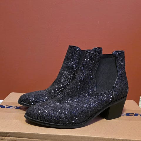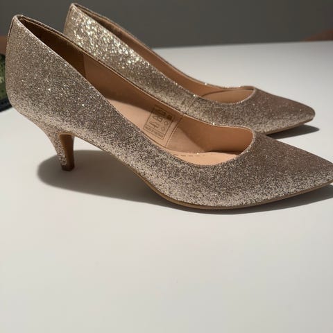 Kjempe fine glitter sko fra bianco i størrelse 39. Lite brukt men da de «røyter» glitter kan de nok ha mistet litt av glitteret i løpet av tiden (ingen synlige bruksmerker eller steder som mangler glitter). Svært gode å ha på beina hele kvelden.