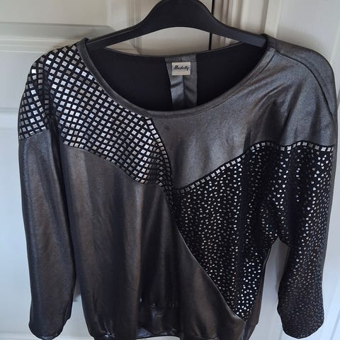 En sort ermløs topp og en med 3/4 ermer. 100 kr pr plagg.