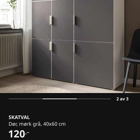 Kvitt platsa skap frå ikea selgast. Pent brukt, ingen merker. Grå skatval dør. 60x40x120cm. Følger med klesstang
