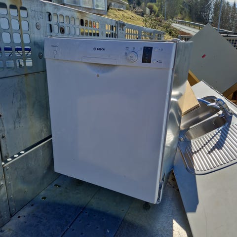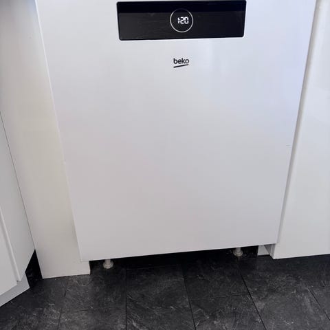 Selges rimelig grunnet manglende nederste hylle og sprayarm. Frontpanel har noen små bulker. Maskinen fungerer.
