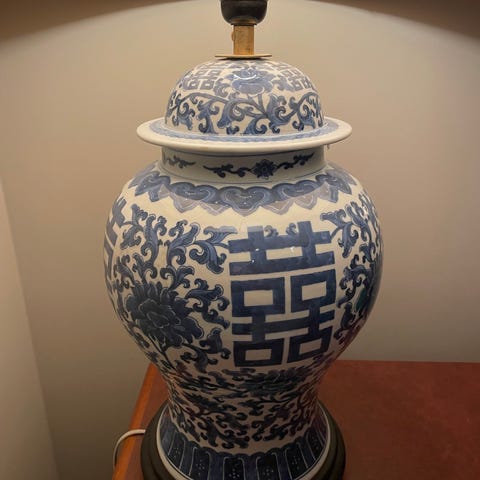 Buddha lampe i porselen, merke Indiska, retro? Nærmere 20 år gammel, å i perfekt stand, bud ønskes