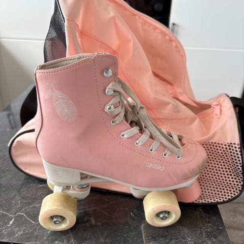 Rulleskøyter i størrelse 37 38. Modellen har klassisk firehjuls oppsett med to hjul foran og to bak.