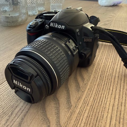 Nikon D5100 speilreflekskamera med zoomobjektiv i svart.