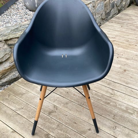 6 stk «Grimstad» spisestoler med armlener i svart plast med metallben selges samlet 1200kr.