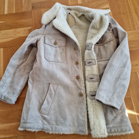 Vintage håndlaget skinnjakke – semsket brun – retro (str M)