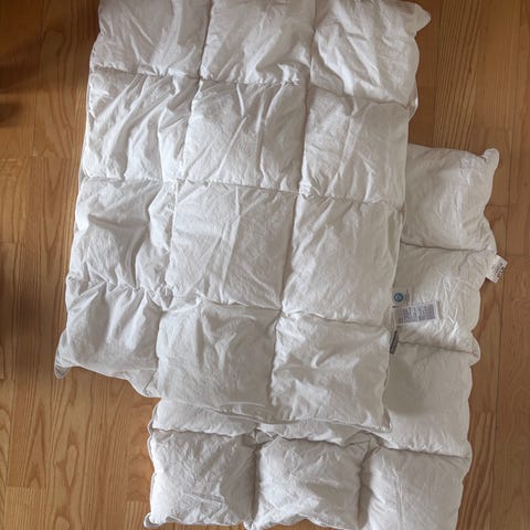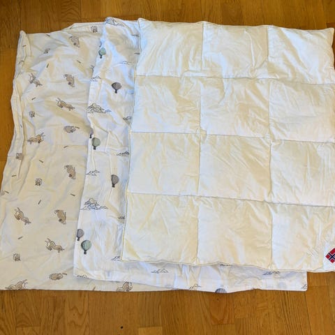 Babydyne 65x80 med 2 stk sett med dyne-og putetrekk. Ny pris totalt ca kr 1300,- selges for kr 600,-