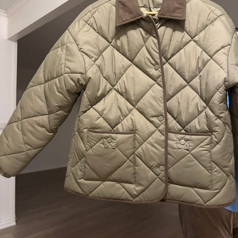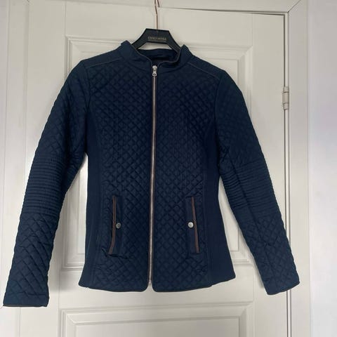 Selger en ubrukt jakke i str 46. Fargen er marine blå. Hovedsaklig vattert boblestoff med innfeldt stretch i sidene. Selges billig