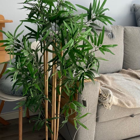 Har du ikke grønne fingre og er på jakt etter et grønt innslag til rommet eller uteområdet? Da kan denne kunstige bambusplanten være noe for deg. Den består av flere bambusstammer med grønne blader. Ingen vanning eller stell nødvendig.