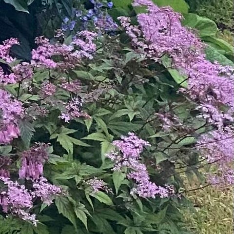 Rhododendron busk med rosa blomster- må graves opp og hentes. Bilder med blomster fra i fjor sommer, mål ca 1.80 høy - diameter 1.20-1.50 (tatt på øyemål)