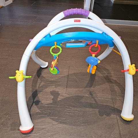 Selger pent brukt Fisher-Price aktivitetsgym / babygym. Den passer fra 2 mnd til opptil to år, da den har mange forskjellige muligheter for lek og læring. Med musikk og lyd. Den fungerer som ny. Gaffateipen vi har satt over høytaleren er kun for å få litt lavere lyd. Volumet har også to justeringer. Våre barn har hatt masse glede av denne!
