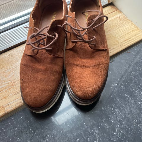 Bianco pensko i størrelse 39. Skoene har snøring og er i brun farge med lys såle. Klassisk, lav modell som passer til hverdagsbruk og mer formelle anledninger. Øvre materiale fremstår som imitert skinn eller skinn, med flat gummisåle for stabilitet og komfort.