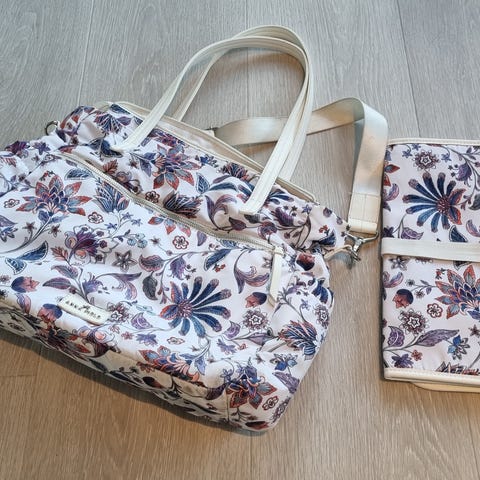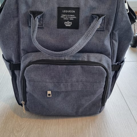 Praktisk sekk med mange lommer. inni sekken er det 5 lommer og en stellematte. på sidene er det lommer til eks våtservietter med tilgang via glidelås eller luke. forlommen har 2 små lommer inni som er isolerte. dette kan holde melken lunket lengere eller kald drikke kjølig lengere.