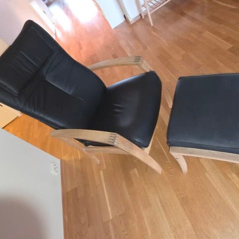 Selger to stilrene og komfortable lenestoler i sort skinn fra Stilbo Møbler.