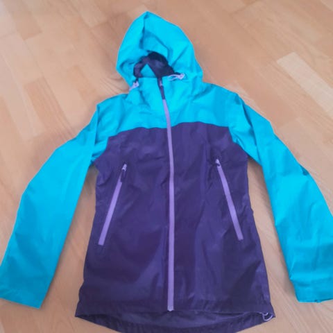 Tofarget-turkis og mellomblå -skalljakke fra Didriksons selges rimelig. Justerbar hette og ermer- borrelås. Hette kan tas av- festet med knapper. Lommer med glidelås.