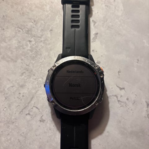 Garmin Fenix 8 47mm Amoled version. Titanium bezel. Original orange bracelet switched for a black one. Watch was bought in july 2025, has been used for 4 months. Looks almost new, but a few scratches on the titanium bezel are present due to the titanium material itself.
