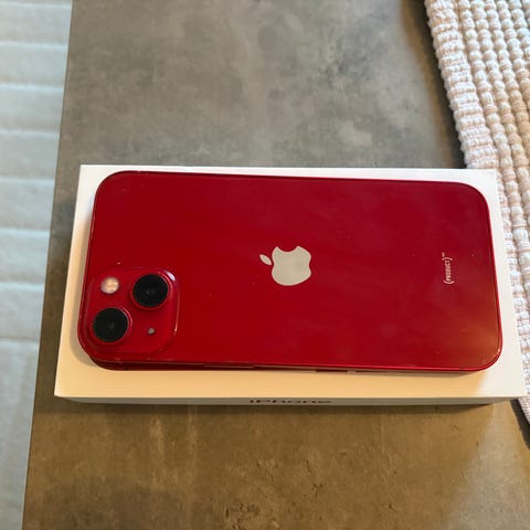 Pent brukt iPhone 13 Mini 128 gb i rød, med nytt 100 % (uorginalt) batteri selges rimelig. Noen bruksmerker på ramme. Følger med eske og to deksel.