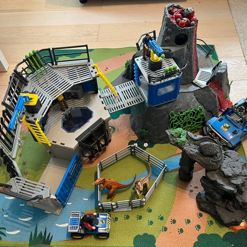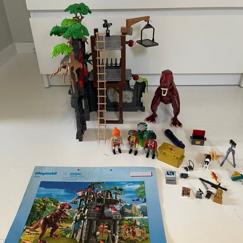 Schleich Dinosaur vulkan lekesett, komplett med instruksjonsbok (bare en av de minste vulkankuler mangler), lite brukt. Lys og lyd fungerer. Må hentes.