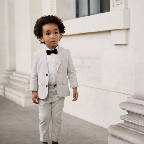 Blå dress med skjorte og sløyfe. Rutete mønster. Pent brukt.