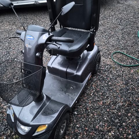 Invacare elektrisk scooter med 4 hjul i svart farge. Scooteren har justerbart sete med armlener og hodestøtte, samt speil på begge sider av styret. Den er utstyrt med lys foran og bak, og har et bredt fotbrett for stabil og komfortabel bruk. Egnet som hjelpemiddel for personer med nedsatt mobilitet til bruk på gangveier og jevnt underlag. Som ny. Brukt kun 62 timer. Nypris 35000,-