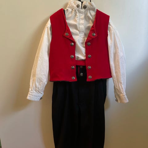 Kjempefin kvalitetsbilder til gutt størrelse 104. Skjorte i bomull og selve bunaden er 80 % ull. Kun brukt en gang. Ingen merker eller feil. Ny pris 1100,- Selger for 600,-