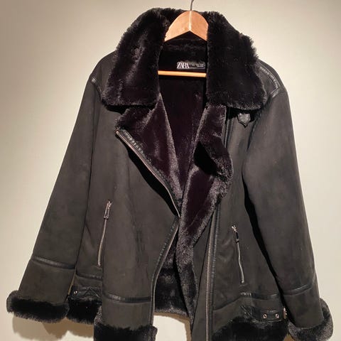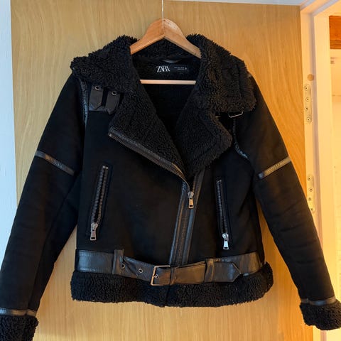 Selger jakke fra Zara i størrelse L kjøpt for noen år siden med kule detaljer✨ Den er pent brukt med litt nupper på innsiden av jakken, men ellers ser den veldig fin ut. Jakken er veldig kul på, både åpen og med glidelåsen igjen! Jakken kan brukes både høst, vinter og vår.