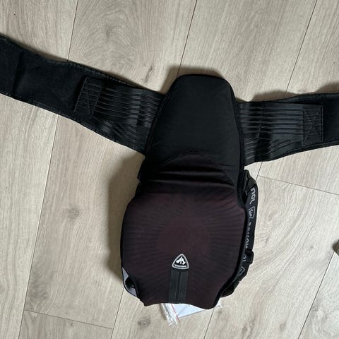 Ryggbeskytter vest med glidelås og justerbart midjebelte med borrelås.