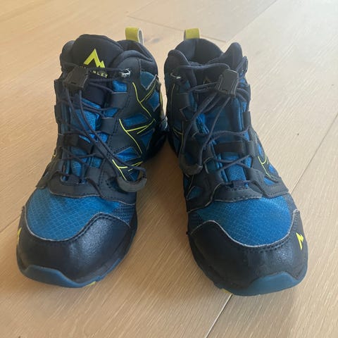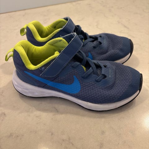 Nike joggesko for gutt i størrelse 33.5. Skoene er blå med svart såle og svarte lisser.