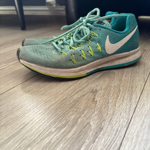 Nike løpesko i størrelse 40. Skoene har svart overdel med lyseblå detaljer og lisser, samt hvit mellomsåle og gul yttersåle. Modellen er laget for løping og har tekstil/mesh-overdel med syntetiske detaljer og gummisåle med mønster for grep. Passer til løping og annen trening der lette joggesko ønskes.