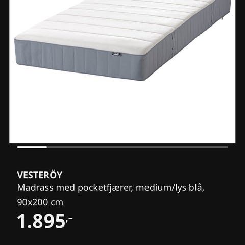IKEA VALEVÅG madrass 160x200 cm i lys blå utførelse. Madrassen har pocketfjærer med medium fasthet og tekstiltrekk i lys blå/grå tone. Størrelsen 160x200 cm passer til dobbeltseng. Egnet for bruk med standard sengebunn eller ribbebunn i samme størrelse.