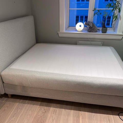 IKEA VALEVÅG madrass 160x200 cm lys blå og kontinental ramme espevar