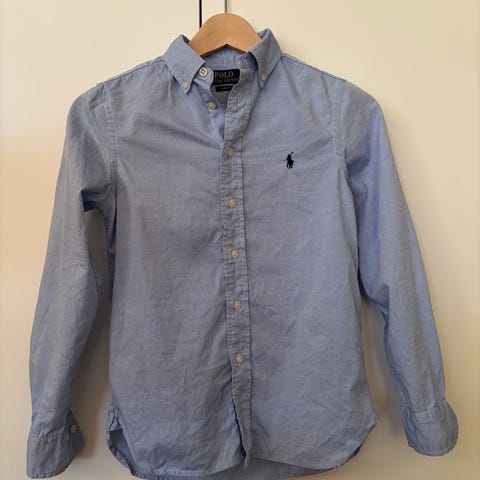 Skjorte med noen flekker( se bilder) på albuene og en liten flekk på ryggen.
