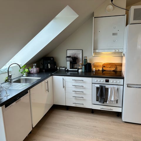 Jeg skal pusse opp kjøkkenet , og selger derfor husets gamle Ikea-kjøkken. Kjøkkenet selges komplett med hvitevarer som man ser på bildene.