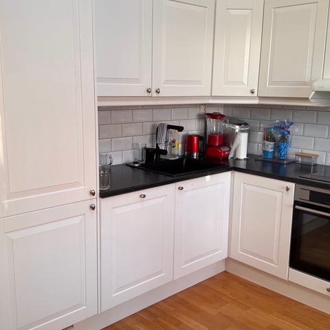 Kjøkkenet har noen kosmetiske bruksmerker. Oppvaskmaskin er ganske ny. Kjøkkenet selges slik det står.