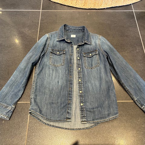 En hvit med blå striper str 10 år