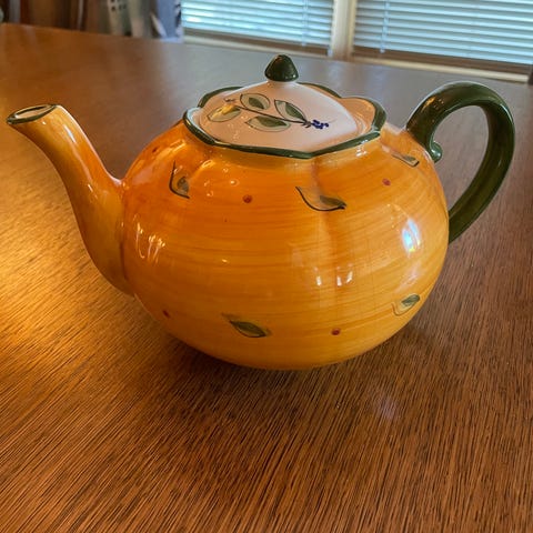 Rydder i kjøkkenskapet! Der står dette fine tekopp m/kanne serviset i hvit porselen for seg selv- nesten ubrukt.